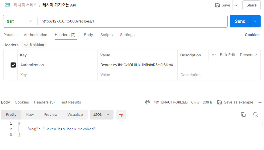 ๋ก๊ทธ์์ํ ํ ํฐ์ผ๋ก API๋ฅผ ์ฌ์ฉํ๋ ค๊ณ ํ๋ฉด ๊ฑฐ์ ํ๋ค (๋ก๊ทธ์ธ ํด์ผ API๋ฅผ ์ฌ์ฉํ ์ ์๋๋ก ์ค์ ํ์๊ธฐ ๋๋ฌธ์!)
