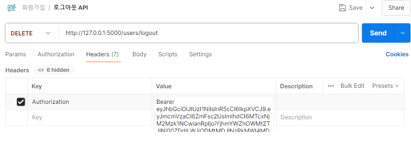 # ๋ก๊ทธ์์๋ ํ ํฐ์ผ๋ก ์์ฒญํ๋ ๊ฒฝ์ฐ, ์ฒ๋ฆฌํ๋ ํจ์ ์์ฑ