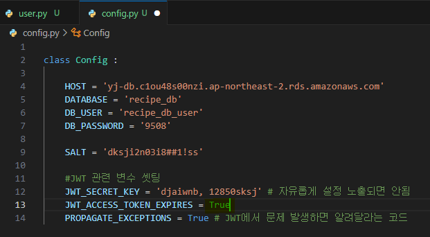로그인 API 만들기 app.py에 삽입하기from resources.user import UserLoginResourceapi.add_resource( UserLoginResource, '/users/login') user.py에 삽입하기from utils import check_password #4에서 삽입class UserLoginResource(Re