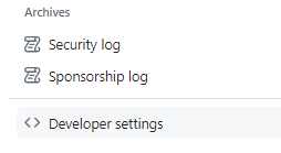 Settings 메뉴 맨 아래 Developer settings 클릭하기