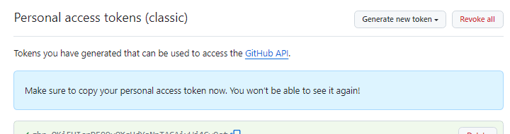 깃허브 토큰 아래 복사해놓고 ******다른곳에 저장해놓기*******
