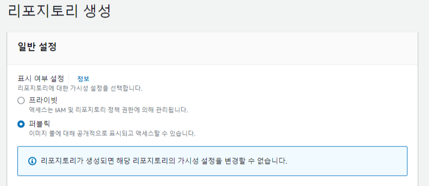 ECR์์ Public registry -> Repository๋ก ์ด๋ํด์, ์์ ->๊ถํ์ผ๋ก ์ด๋ํ๊ธฐ