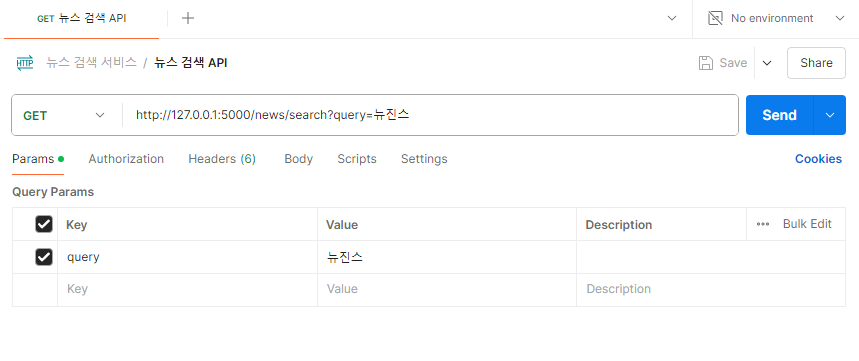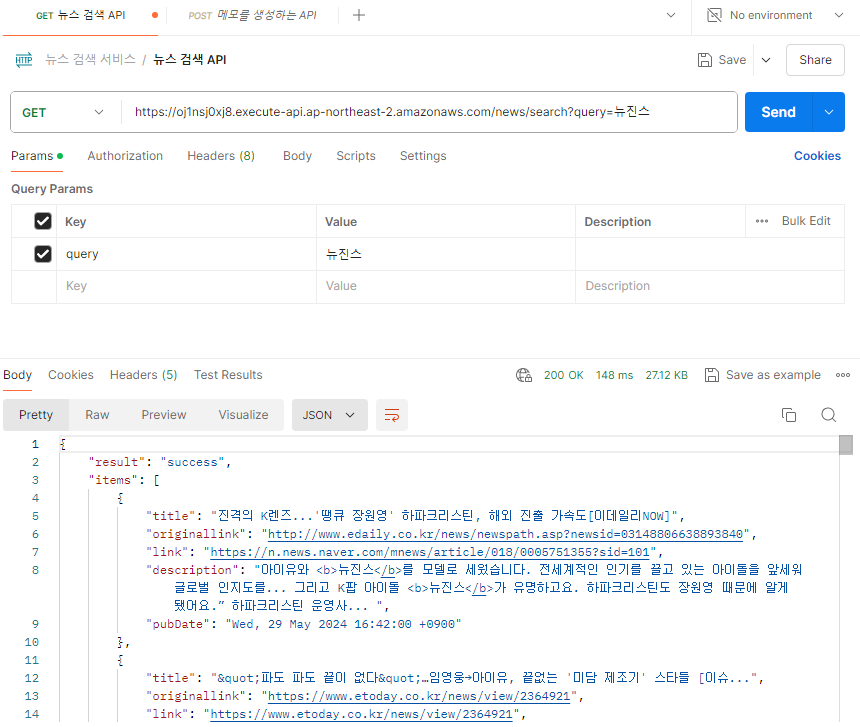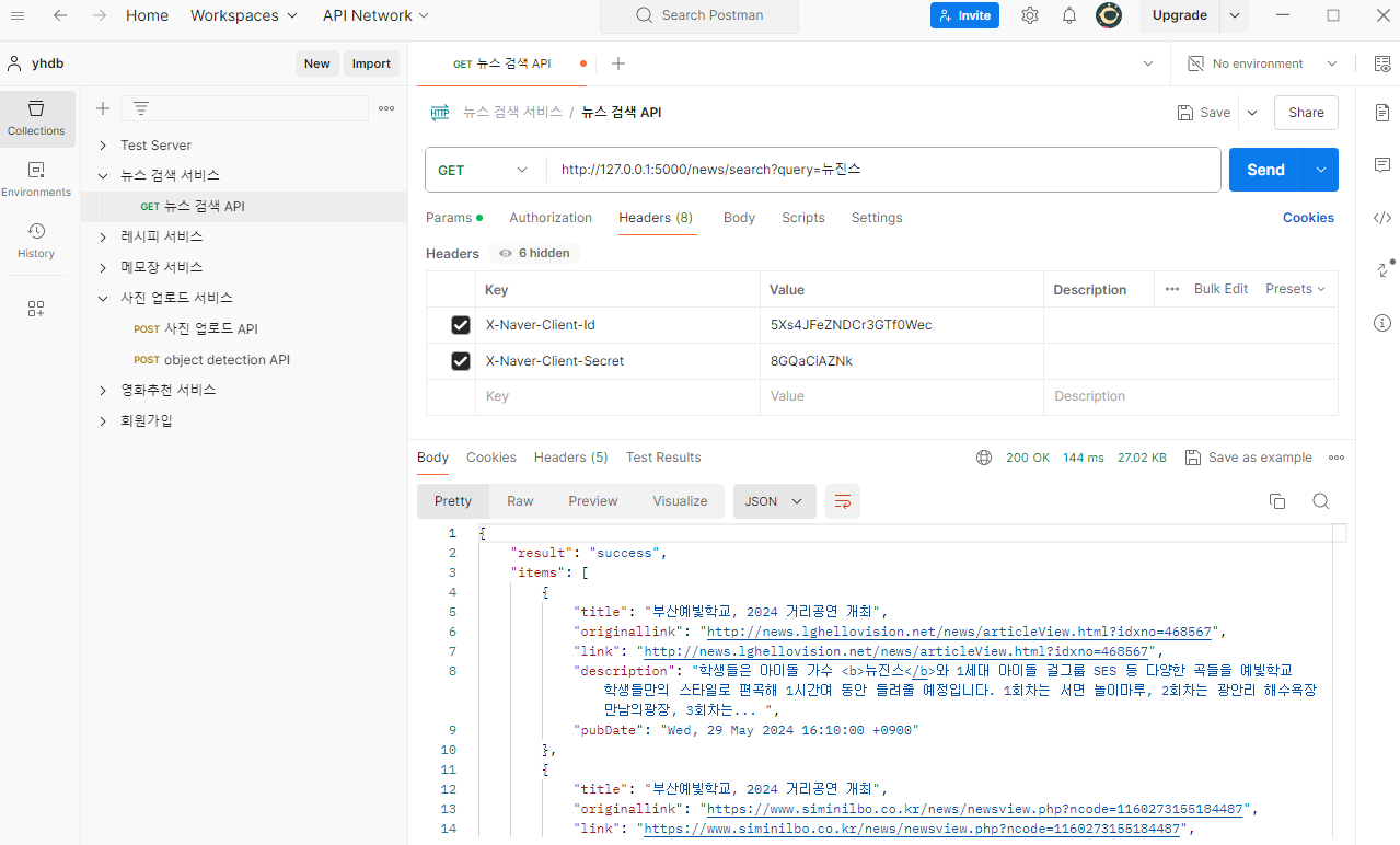 ํค์๋๋ฅผ ๊ฒ์ํ๋ฉด ํค์๋์ ๋ํ ๋ด์ค๋ฅผ ๋์ค๊ฒ ํ๋ ๋ด์ค ๊ฒ์ API๋ฅผ ๋ง๋ค์ด ๋ณด๋ ค๊ณ ํ๋ค.