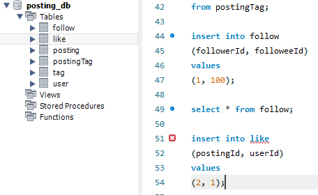 INSERT INTO `like` (postingId, userId) VALUES (2, 1);