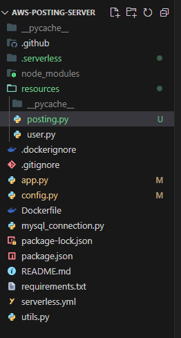 (1). serverless로 aws-posting-server를 만들고 vscode로 열어주었다.