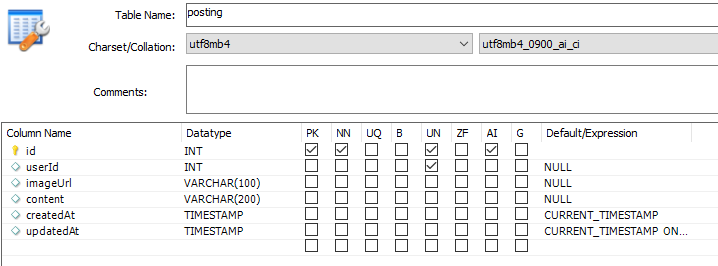 updatedAt은 now() on update now()를 입력하고 apply 해주면 입력된다.
