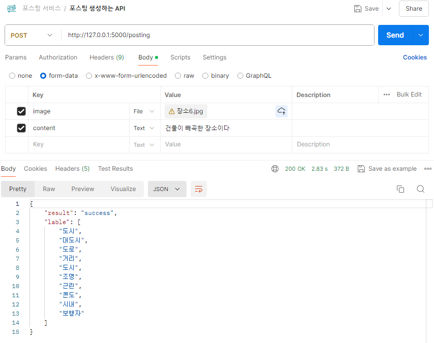 return {"result":"fail", "error":"파일을 업로드 하세요."}, 400