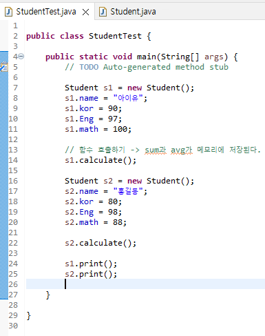 //์ ์ฅํ ๋ณ์๋ฅผ ๋จผ์ ๋ง๋ค๊ณ ๋์, ๋ฉ์๋๋ ๋์ค์ ํ์์ ์ํด ๋ง๋ ๋ค.