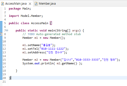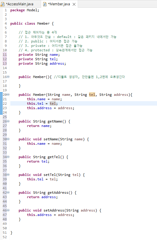 public Member(){ //๋ํดํธ ์์ฑ์, ์๋ง๋ค๋ฉด 1,2๋ฒ์ ์ค๋ฅ์๊ธด๋ค