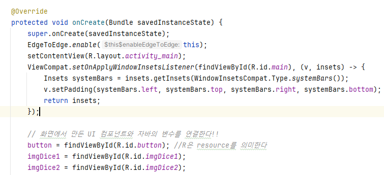 MainActivity.java๋ก ์ด๋ํ๋ค.