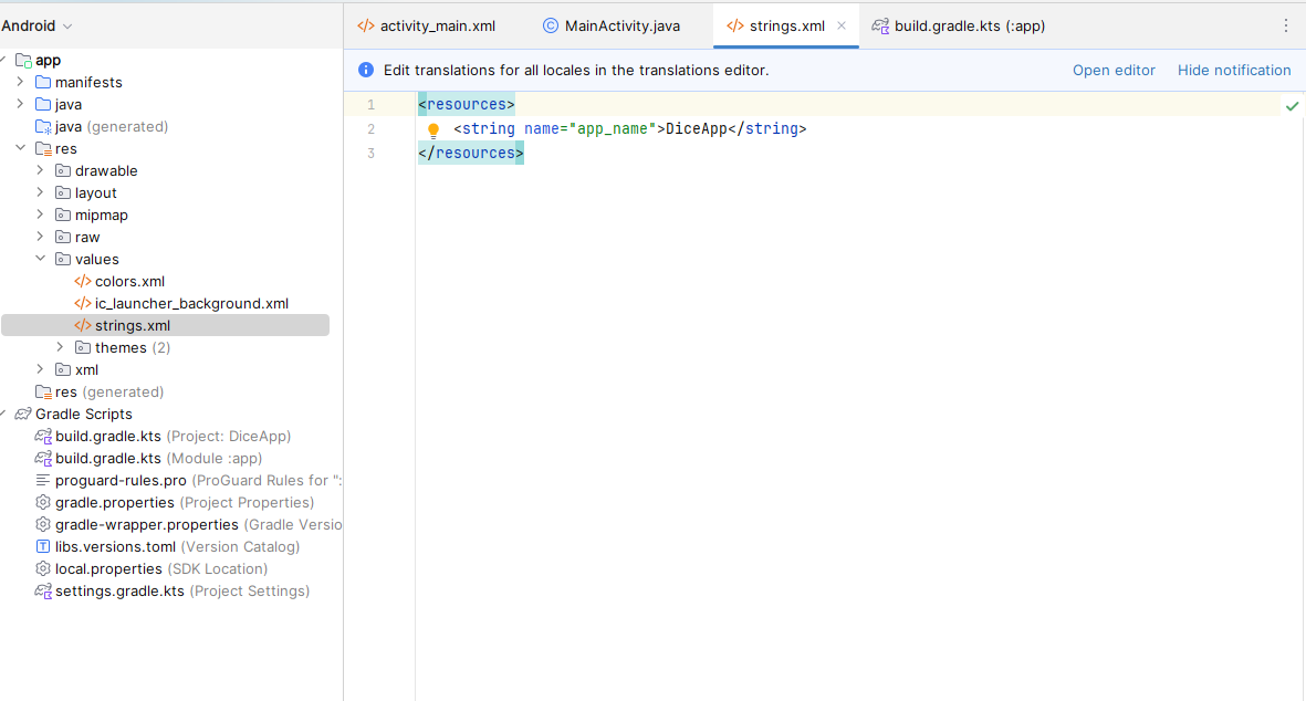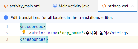 ๊ฒฝ๋ก ์ด๋ res -> values -> strings.xml