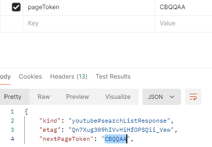 2. ํฌ์คํธ๋งจ์์ nextPageToken์ ์ฌ์ฉํ๋ ๊ฒ์ ํ์ธํ๋ค.