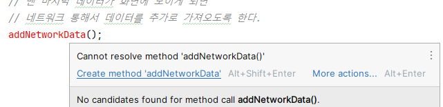 4. MainActivity์ addNetworkData() ํจ์ ๋ง๋ค์ด์ฃผ๊ธฐ(Create)