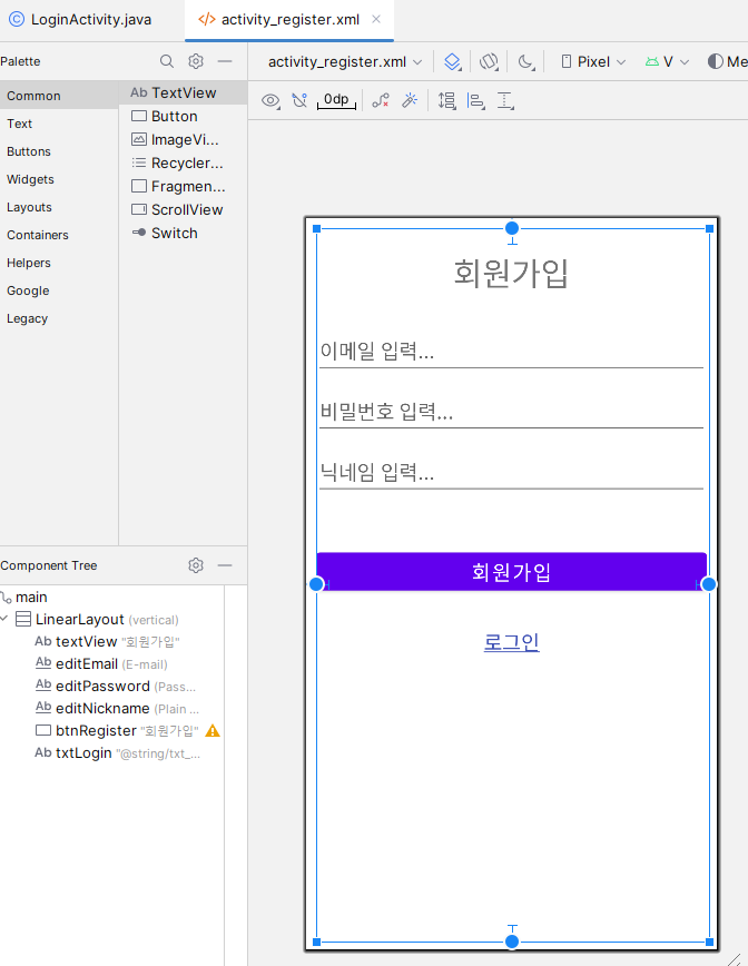 activity_Register.xml ๋ง๋ค๊ธฐ