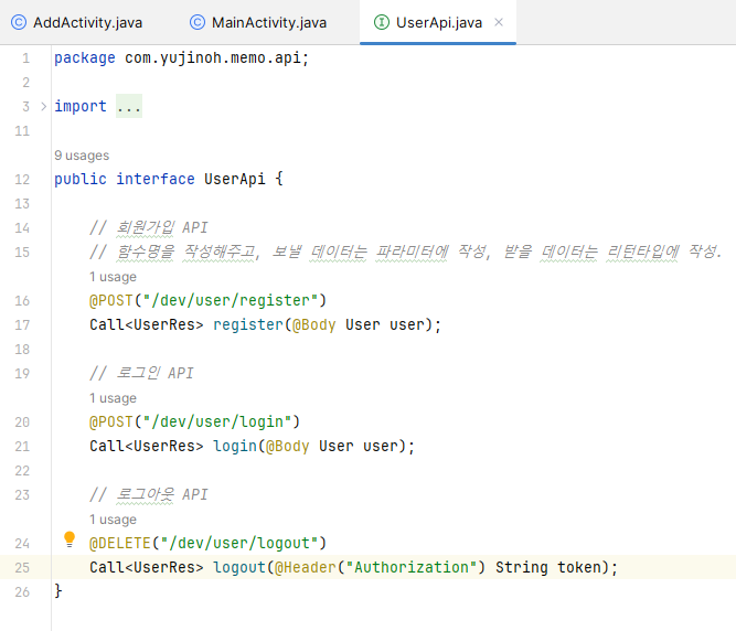 Call<MemoList> call = api.getMemoList("Bearer "+token);