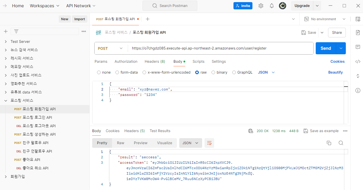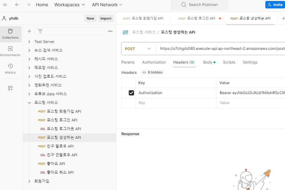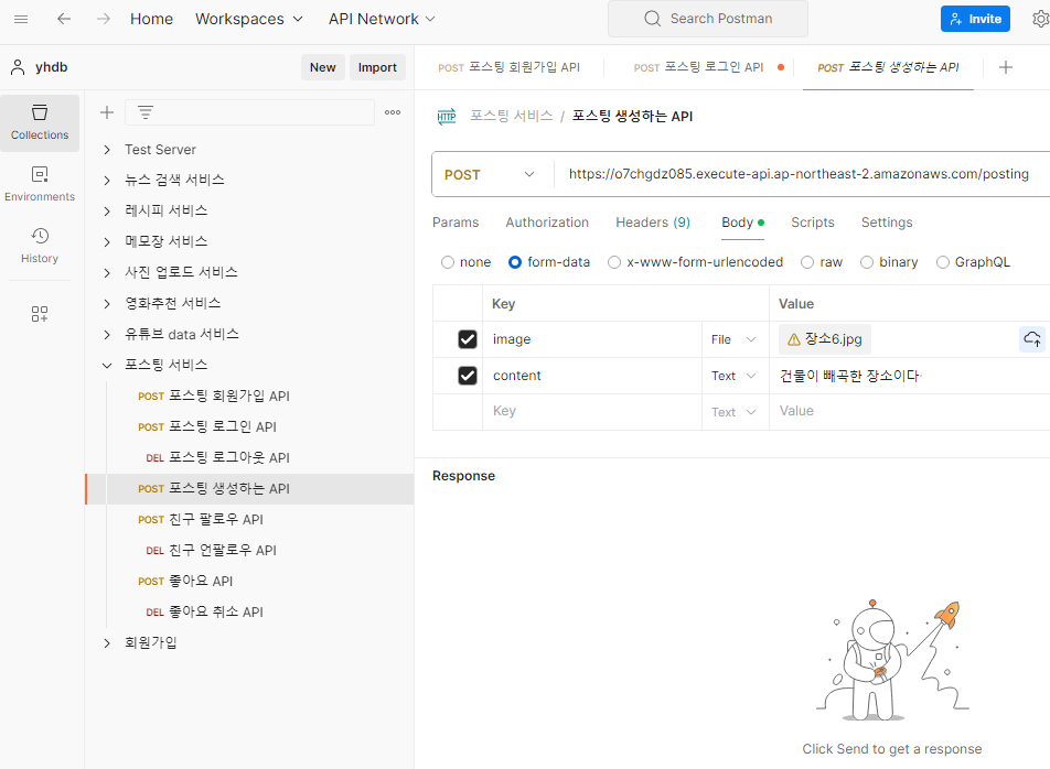ํฌ์คํ API๋ฅผ ๋ง๋ vscode๋ฅผ sls deploy ํด์ค ํ, ๋์จ endpoint ์ฃผ์๋ก ํ์๋ค