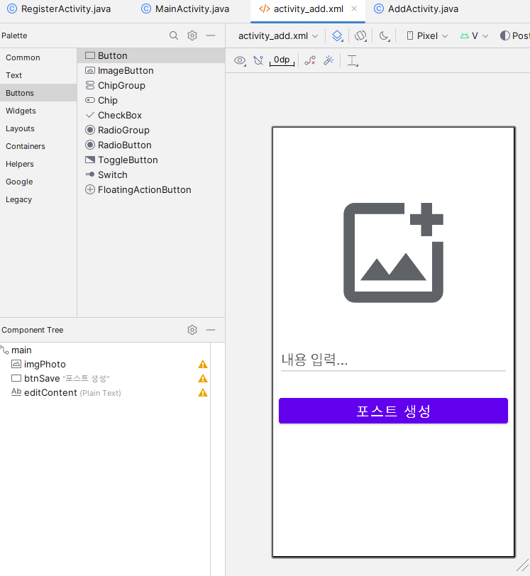 import com.~.postingapp.R;