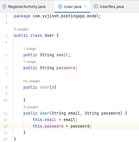 model ํจํค์ง User, UserRes ํด๋์ค ๋ง๋ค๊ธฐ
