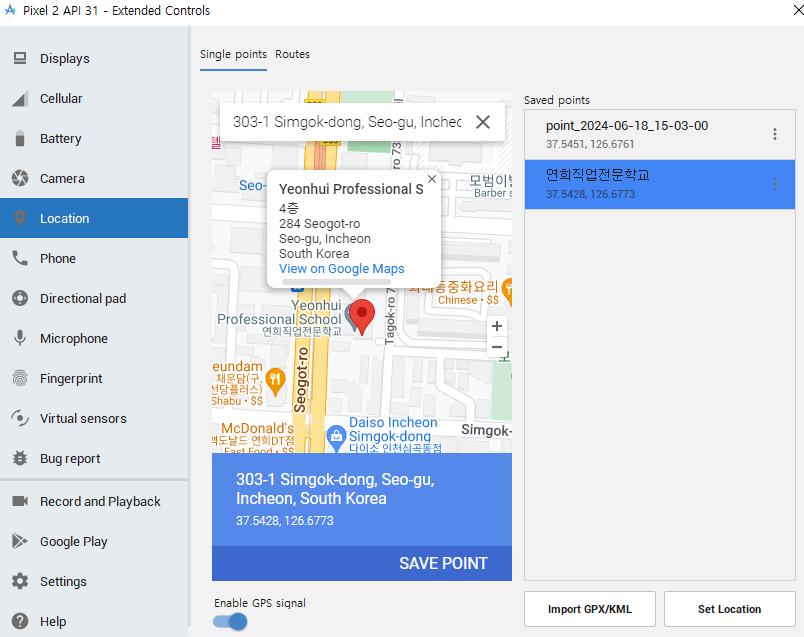 ์ง์ ํ๊ณ ์ถ์ ์์น๋ฅผ ํด๋ฆญํ๊ณ SavePoint๋ฅผ ํ ๋ค, import GPX/KML ๋๋ฌ์ค๋ค