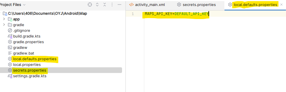 API ํค ๋ณต์ฌํ ๊ฒ secrets.properties์ ์์ฑํ๊ธฐ