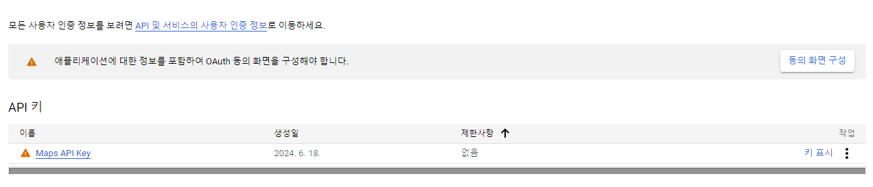 ์ฌ์ฉ์ API ํค ์์ฑ ํ, API ํค๋ฅผ ํด๋ฆญํด์ ๋ค์ด๊ฐ์