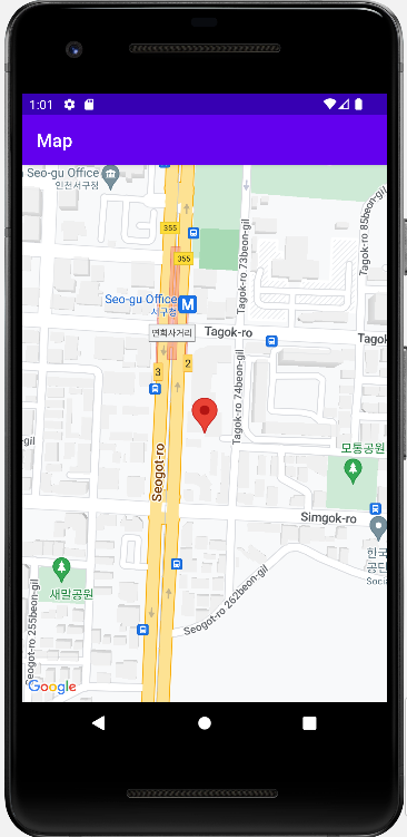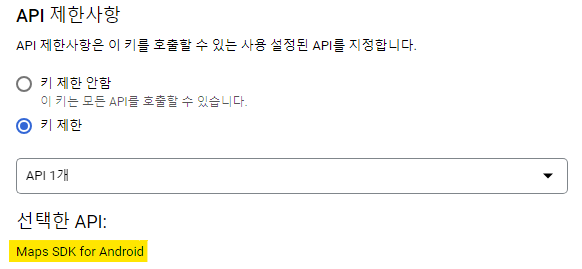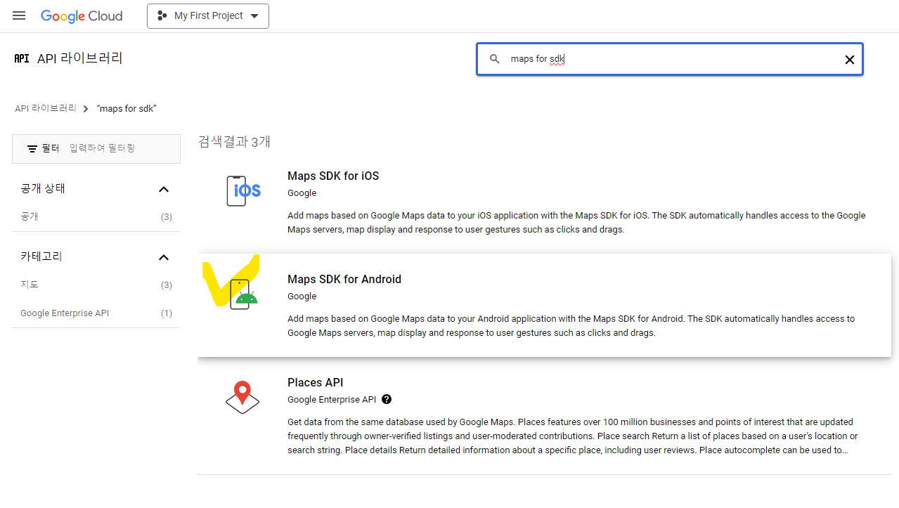 Maps SDK for Android API๋ฅผ ์ ํํ์ฌ ์ ์ฅ ๋๋ฅด๊ณ ,
