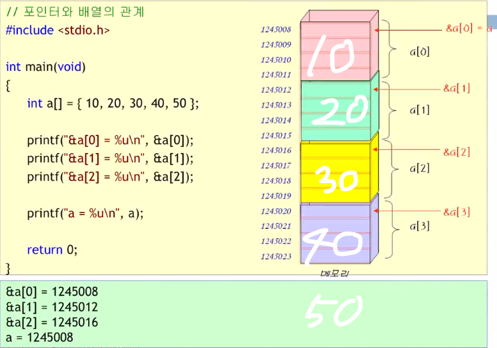 - ๋ฐฐ์ด ์ด๋ฆ์ด ๋ฐ๋ก ํฌ์ธํฐ์ด๋ค.