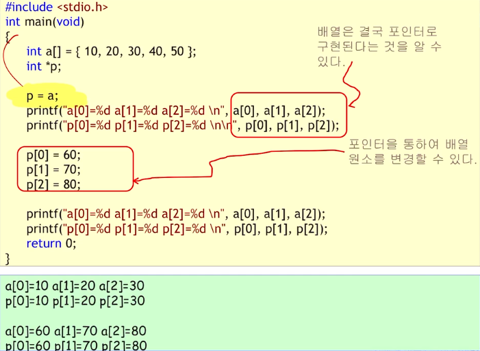 - ๋ฐฐ์ด๊ณผ ํฌ์ธํฐ๋ ์์ฃผ ๋ฐ์ ํ ๊ด๊ณ๋ฅผ ๊ฐ์ง๊ณ ์๋ค.