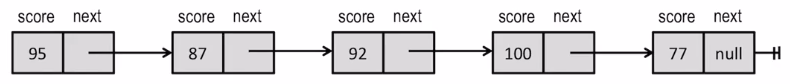 - ๊ฐ๊ฐ์ ์์(node)๊ฐ ํฌ์ธํฐ๋ฅผ ์ฌ์ฉํ์ฌ ๋ค์ ์์(node)๋ฅผ ๊ฐ๋ฆฌํจ๋ค(pointํ๋ค).