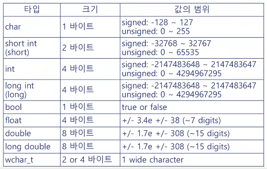 - κΈ°λ³Έ νμ : C++ μΈμ΄κ° μ§μ μ§μνλ νμ