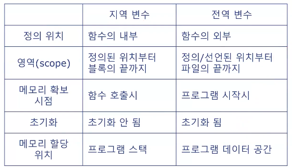 - μ§μ λ³μλ ν¨μ λ΄λΆμμ μ μλλ©°, ν΄λΉ ν¨μ λ΄μμλ§ μ ν¨νλ€.