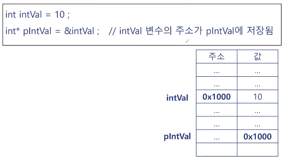 - ํฌ์ธํฐ ๋ณ์๋ ์ฃผ์๋ฅผ ์ ์ฅํจ