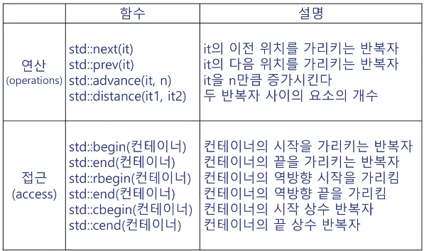 - vector, set, list, map ๋ฑ์ ์ปจํ ์ด๋์ ์ ์ฅ๋ ๊ฐ ์์๋ฅผ ์ ๊ทผํ๊ธฐ ์ํ ํด๋์ค