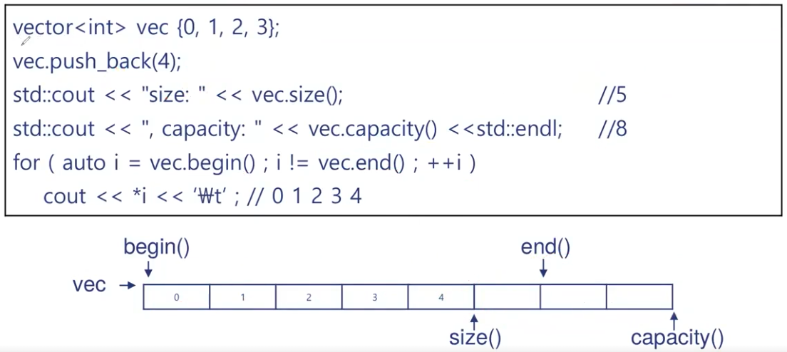 - ์ฑ ์ฅ์ ์ฑ ๋ค์ด ์์๋๋ก ๋๋ํ ๊ฝํ ์๋ ๊ฒ์ฒ๋ผ, std::vector์ ์์๋ค๋ ๋ฉ๋ชจ๋ฆฌ์์ ๋๋ํ ์ ๋ ฌ๋จ