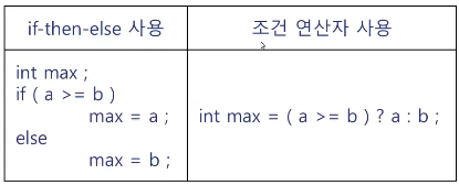 (2) ์กฐ๊ฑด ์ฐ์ฐ์ : x ? a : b , ์กฐ๊ฑด x๋ฅผ ๋ง์กฑํ๋ฉด(true) ํํ์ ๊ฐ์ a๊ฐ์ ๊ฐ์ง๊ณ ์๋๋ฉด(false) b์ ๊ฐ์ ๊ฐ์ง