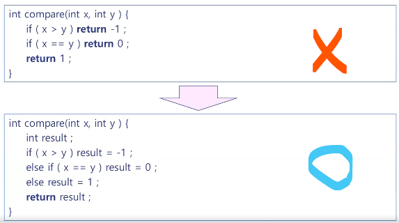 - return๋ฌธ์ ํจ์์ ๋ง์ง๋ง ๋ฌธ์ฅ์ผ๋ก 1ํ๋ง ์ฌ์ฉํ๋ค
