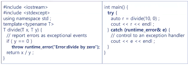 throw "Division by zero error"; // 0์ผ๋ก ๋๋๋ฉด ์์ธ ๋ฐ์