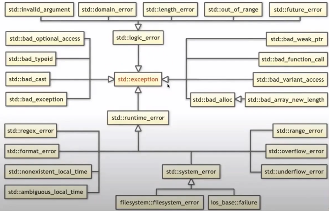 C++ ํ์ค ๋ผ์ด๋ธ๋ฌ๋ฆฌ๋ ํ๋ก๊ทธ๋จ ์คํ ์ค์ ๋ฐ์ํ ์ ์๋ ๋ค์ํ ์ค๋ฅ๋ฅผ ์ฒ๋ฆฌํ๊ธฐ ์ํด ์์ธ ํด๋์ค๋ฅผ ์ ๊ณตํ๋ค. ์ด๋ฌํ ์์ธ ํด๋์ค๋ ๊ณ์ธต ๊ตฌ์กฐ๋ฅผ ์ด๋ฃจ๊ณ ์์ผ๋ฉฐ, ๊ธฐ๋ณธ ํด๋์ค์ธ std::exception์ ์์ํ์ฌ ๊ตฌ์ฒด์ ์ธ ์์ธ ์ํฉ์ ์ ์ํ๋ค.
