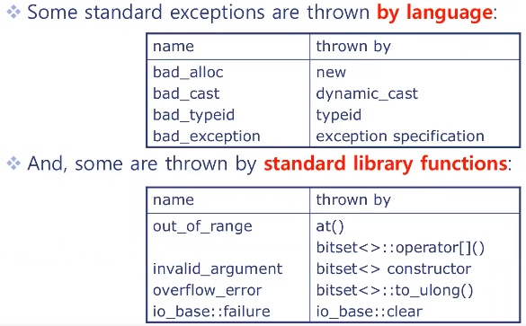 ํ์ค ๋ผ์ด๋ธ๋ฌ๋ฆฌ ํจ์์ ์ํด ๋ฐ์ํ๋ ์์ธ (thrown by standard library functions)