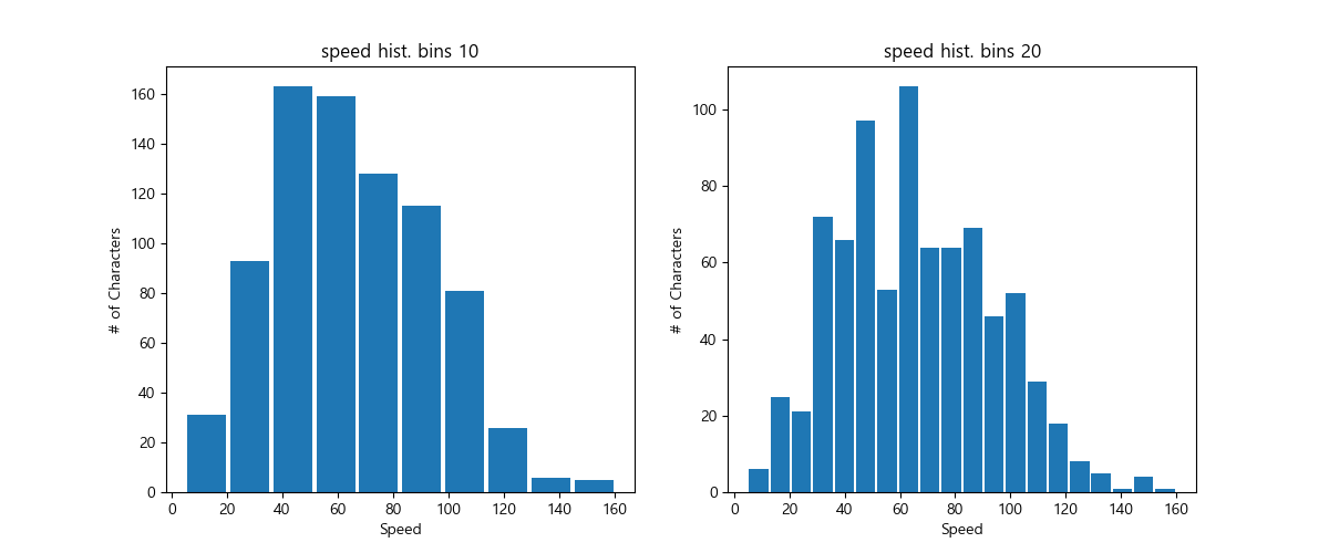 - ํ์คํ ๊ทธ๋จ์ ๋๊ฐ์ ๋ฐ์ดํฐ๋ฅผ ๊ฐ์ง๊ณ bin์ ์ด๋ป๊ฒ ์ค์ ํ๋๋์ ๋ฐ๋ผ์ ์ฐจํธ๋ชจ์์ด ๋ฌ๋ผ์ง๋ฉฐ ํด์์ด ๋ฌ๋ผ์ง๋ค