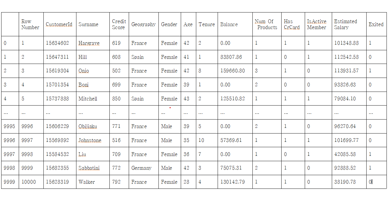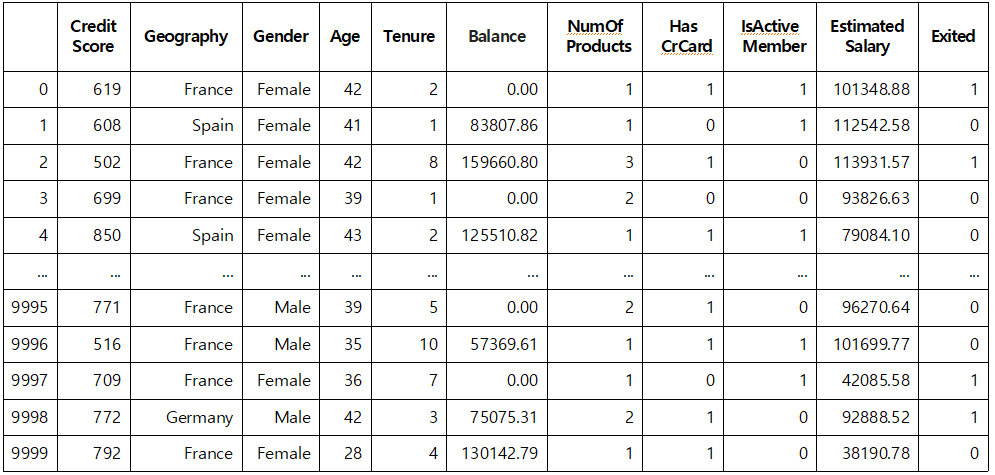 Churn_Modelling.csv ํ์ผ์ ๋ณด๋ฉด, ๊ณ ๊ฐ ์ ๋ณด์ ํด๋น ๊ณ ๊ฐ์ด ๊ธ์ต์ํ์ ๊ฐฑ์ ํ๋์ง ์ํ๋์ง์ ์ฌ๋ถ์ ๋ํ ๋ฐ์ดํฐ๊ฐ ์๋ค. ์ด ๋ฐ์ดํฐ๋ฅผ ๊ฐ์ง๊ณ ๊ฐฑ์ ์ฌ๋ถ๋ฅผ ์์ธกํ๋ ๋ฅ๋ฌ๋์ ๊ตฌ์ฑํ์์ค.