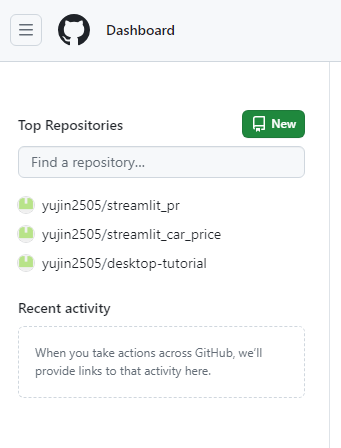๊ทธ๋ฆฌ๊ณ ๊นํ๋ธ์ ๋ค์ด๊ฐ ์ ์ฅ์(Repository)๋ฅผ ์์ฑํ๋ค
