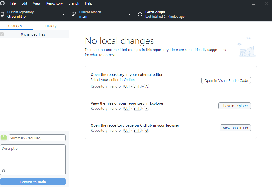 ๊ทธ๋ฌ๋ฉด ์ด๋ฐ ํ๋ฉด์ด ๋ฌ๋ค. <> Code๋ฅผ ๋๋ฅด๊ณ Open with GitHub Desktop์ ๋๋ฅธ๋ค