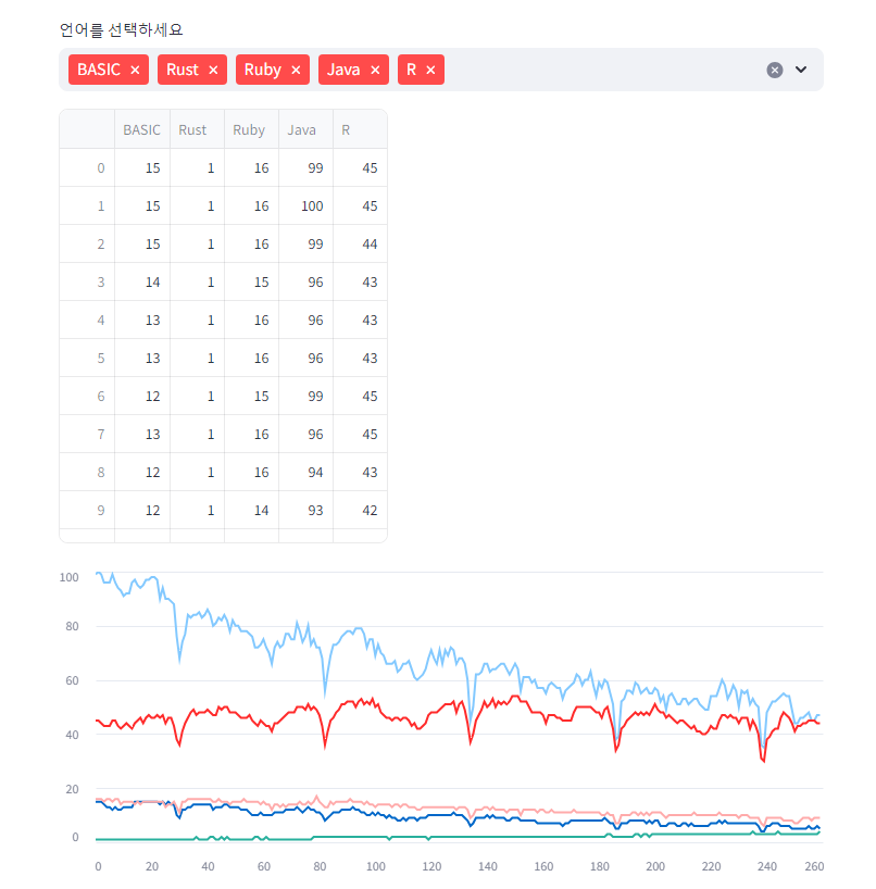 choice_list = st.multiselect('언어를 선택하세요', column_list)