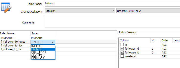 ์ธ๋ฑ์ค ์ด๋ฆ์ ์์ ๋กญ๊ฒ ์ค์ ํ๊ณ , Type์ UNIQUE๋ก ๋ฐ๊ฟ์ค๋ค์,