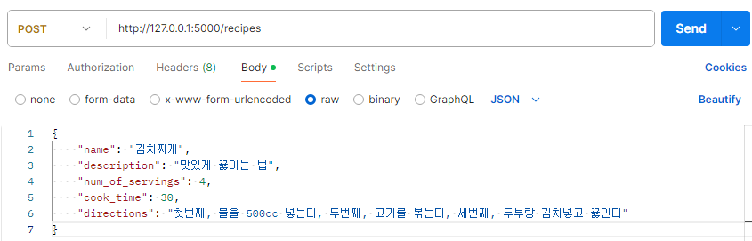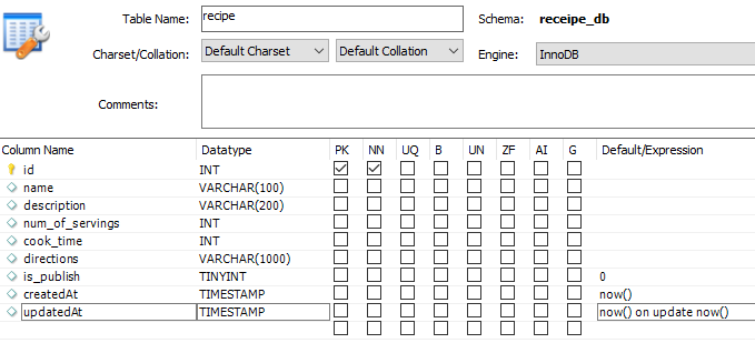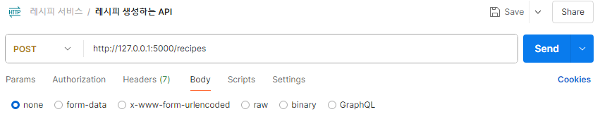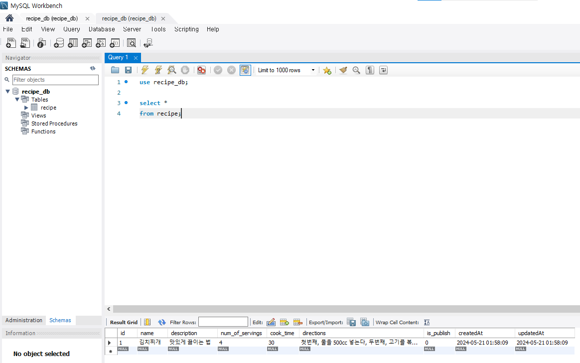 DB๋ก ๋ค์ด๊ฐ recipe Table์ ๋ง๋ ๋ค