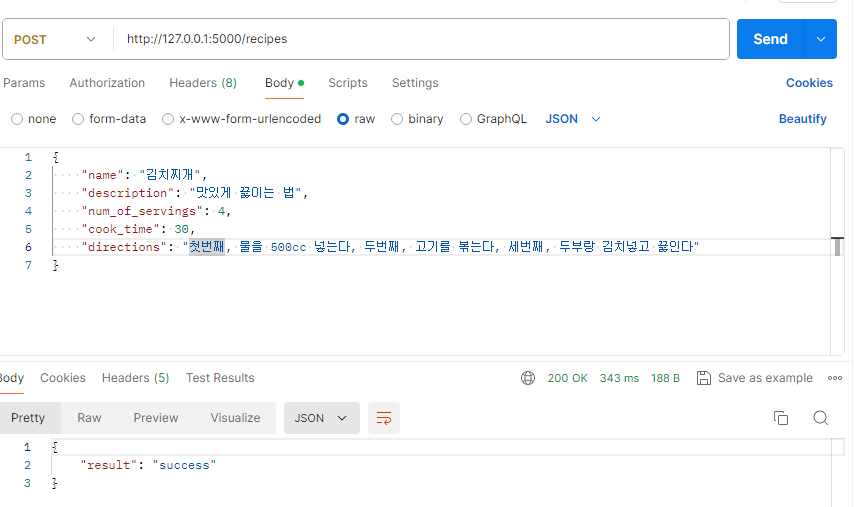 ๋ค์ Postman์ผ๋ก ๋์์ Send๋ฅผ ๋๋ฅด๋ฉด success๊ฐ ๋ฌ๋ค. ์๋ฌ๊ฐ ๋ฌ๋ค๋ฉด ์ฝ๋์ ์คํ๊ฐ ์๋์ง ํ์ธํ์.