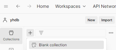 New -> collection ํด๋ ๋๊ณ , +๋ชจ์์ ๋๋ฌ์ Blanck collection ํด๋ ๋๋ค.