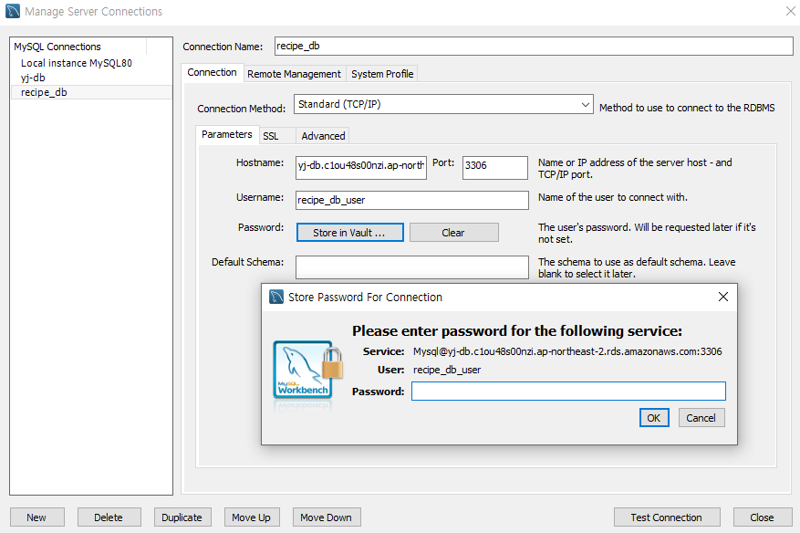 -- recipe_db ์๋ง ์ ์ฉ์ผ๋ก ์ ์ํ ์ ์๋ ๊ณ์ ์ ๋ง๋ค์ด์ผ ํ๋ค