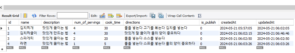 Postman GET์ Request๋ Query String(Query Parameters)์ ์ฌ์ฉํ๋ค- offset : 0- limit : 25 DB ์ค๊ณํ๊ธฐ ์ฝ๋ ์ ๋ ฅํ๊ณ ์คํํ๊ธฐ (๋น๋ฐ๋ฒํธ ๋ถ๋ถ ์์ ํด์ ์ ๋ ฅํ๋ค)-- recipe_db ์๋ง ์ ์ฉ์ผ๋ก ์ ์ํ ์